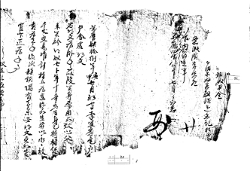 萬曆四十年壬子十二月十八日, 四寸前宜寧縣監李涵前明文. 右明文爲臥乎{事/叱}段, 女亦寡居累年, 賦役煩重, 對答無 路乙仍于, 矣邊傳來, 婢玉眞得後六所生奴蘭伊年十一壬寅 生矣身乙, 折楮貨三千張, 交易依數捧上爲遣, 後所生幷 以, 永永放賣爲去乎, 鎭長執持使喚爲乎矣, 後次女矣族類 -