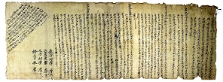 天啓六年丙寅四月二十二日尹都事宅戶奴順忠處明文 右明文事段移買事以祖上衿得耕食爲如乎椒皮寺洞員騰字畓伍斗落只負數十二卜四束庫乙價折正五升木綿柒疋以交易依數捧上爲遣同宅奴處永永放賣爲去乎後次良中 某同生及子息中雜談爲去等 此文記告官辨正敎事 畓主私奴延朴〔手寸〕 證人私奴順才〔手寸〕 證保私奴禮孫 -
