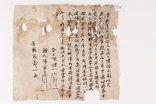 康熙拾壹年壬子四月二十一日尹正字宅奴愛順處明文 右明文事段要用所致以上典主牌字導良花山二道竹島員伏在茂字田種太三斗落只卜數十二卜二束庫乙價折木壹同交易依數捧上爲遣同買得本文記幷以同人處永永放賣爲去乎後次如有雜談爲去等將此文告官卞正事 田主奴土木〔手寸〕 證人私奴大男〔手寸〕 證保私奴善日〔手寸〕 -