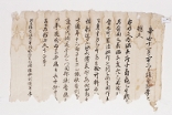 土地明文 10 1682(肅宗8) 43×44 康熙二十一年【〔壬戌〕】十月二十六日明世處明文 右明文事段貧寒所致以祖上衿得耕 食爲如可道內立石村爲字田五升 落只所耕四束庫價租十斗以交易依 數捧上爲遣二[異]往[姓]姪子明世處永永放賣 爲去乎後次幸有雜談爲去等此文記以告 官卞正事 田主 上男<左 -