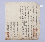 土地明文 12 1684(肅宗10) 52×40 康熙貳十五年【〔丙寅〕】三月初九日奴萬伊處明文 右明文爲事段貧迫所致以値此大無之 年資生爲難乙仍于勢不得已道內里元堂 伏在玉字畓伍斗落只肆夜味所耕玖負肆束 㐣同人處價折正租三十石以交易依數捧 上爲遣右人處本文記幷以永永放賣爲 去乎後次幸爲同生子孫 -