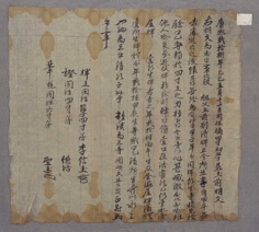 土地明文 13 1688(肅宗14) 50×82 康熙二十七年【〔己巳〕】正月初二日奴申金處明文 右明文爲臥乎事段要用所致以矣上典主宅牌子 導良靈光道內面居奴乭坪故子息順化衿得云云道內 面伏在推字畓五斗落只四夜味所耕二作十五卜 束庫 價折細布四疋以交易依數捧上爲遣右人處永永放 賣爲去乎後次矣上典 -
