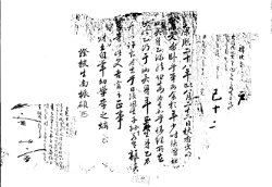 土地文記 1 康熙二十六年丁卯十一月二十四日 業武金興■前明文 又明文爲臥乎事段 要用所致以 自己買得爲在吉安後峴 浮字一百九十六田四卜九束 一百九十七田九卜一束 一百九十八田二卜一束 一百九十九田四卜四束 二百田六卜二束二百一田四卜三束 二百二田五束 二百四田十卜八束 二百五田二卜一束等㐣價折 -