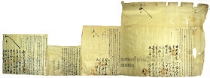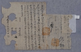 右人▣… 得又▣相考依例斜給事, 行下 爲只爲, 行下向敎是事. 官主處分 丁丑四月日 所志 依斜 五卄八 官[着押] 康熙三十六年【丁丑】四月初九日李生員宅奴大守前明文 右明文爲臥于事段, 貧寒所致以買得耕食 爲在伏剪字畓陸斗落只拾貳卜庫乙, 價折銀子 拾貳兩, 依數交易捧上爲遣, 本文記三張 -