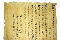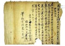 乾隆拾貳年戊戌三月二十六日, 金海准前明文. 右明文爲臥乎事段, 矣祖上傳來, 耕食 爲如可, 要用所致以, 吐旨堂山員伏, 字醎畓壹斗 落只, 負數四卜二束庫, 價折錢文參戔, 依數 交易捧上爲遣, 本文記幷以, 右人前, 永永放 賣爲去乎, 日後如有族屬中生謀雜談 之弊是去等, 持此文記, -