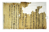 奴汗同處. 無他, 上典宅, 有要用處, 沙谷員陰 字六十田捌負九束, 六十一田肆負二束, 六十二田壹負五束庫, 三作幷以, 汝亦, 此牌旨導良, 某處求賣, 同價物乙, 依數納上後, 明文成給事. 辛未元月二十日. 上典 邊〔着押〕 G002+AKS+KSM-XE.1751.0000-2010 -