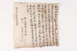土地明文 23 1754(英祖30) 35×33 乾隆十九年【〔甲戌〕】四月二十一日辛慶龍前明文 右明文事段要用所致伏在防築 底坪爲字畓三斗落只四夜味所耕十 一卜五束㐣價折錢文三十兩 依數捧上爲遣門稧中永永放賣 爲乎矣本文幷以傳授爲去乎日後 子孫中如有雜談是去等持此文 卞正事 畓主族末辛命凝〔着 -