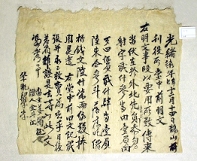 乾隆二十二年丁丑正月十一日, 幼學陳漢亨前明文. 右明文爲事段, 矣師翁祭位畓, 累耕食, 奉行祭祀 是如可, 至於今年, 生道爲難乙仍于, 勢不得已, 伏在 求禮吐旨金谷員, 調字畓一卜七束, 及陽字畓二作 幷肆斗落只, 負數十四卜一束㐣, 價折錢文參 拾肆兩, 依數交易捧上爲遣, 右人前, -