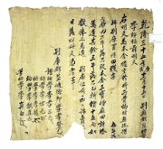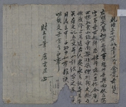 乾隆三十年乙酉十二月二十四日, 朴生員宅奴萬泰處明文. 右明文事段, 奴矣宅上典, 千萬意外喪事, 出於 去月是乎所, 初喪所入許多錢兩, 他無變通, 求禮吐 旨面伏在, 吾里洞騰字六十七畓卅七卜八束, 六十八畓十五卜六束 庫, 幷十一斗落只㐣, 價折錢文壹百兩, 依數 捧上爲遣, 右宅上典牌子 -