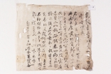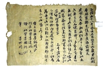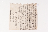 土地明文 32 1767(英祖43) 37×45 乾隆參拾貳年【〔丁亥〕】正月十四日金守旭處明文 右明文事段矣身邊租十斗太二斗甲申 條舊邊米六斗七升太七升七合乙備納之道 出處無路故村前案山柴場十餘卜 所出之處乙右人處價錢貳兩陸錢乙依數 捧上爲遣永永放問[賣]爲乎矣本文書段中 間閪失故未能出給爲去 -