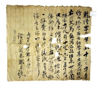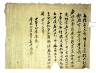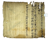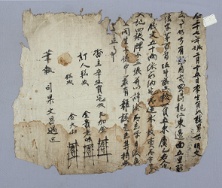 乾隆三十六年辛卯十一月初四日, 張泰雲前明文 右明文爲臥乎事段, 矣上典宅, 將有營葬之計, 而無〔孫〕 奴所耕田土, 依法記上執持是在, 遠黃員章字四十四田三〔負九束〕 四十三田二負七束四十五田一負一束, 合三作七負七束皮牟一石五斗落〔只〕, 折價放賣納宅亦, 牌字爲有等以, 依牌字捧價錢文貳 -