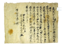 乾隆三十六年辛卯正月十一日, 鵲山別 廟都廳有司幼學李孝三前明文. 右明文事段, 適有移買處, 北先台洞員 拜字六十三, 傳來衿得畓九卜一束, 六十四畓七束 廤乙, 價折錢文陸拾兩乙, 依數捧上爲 遣, 右人前, 永永放賣爲去乎, 日後▣▣ 子孫中, 如有雜談是去等, 用此文, 告 官卞正事. -