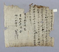 乾隆四十五年庚子十二月初七日, 柳生員宅奴用奉處. 右明文事段, 移買此, 吐旨面石朴只員, 騰字畓三斗落只, 負數三作幷以 八卜五束庫果, 天皇員伏在, 露 字畓二斗落只, 數六卜三束兩庫, 右人處, 價折錢文伍拾兩捧上 是遣, 永永放賣爲去乎, 本文 記段, 他畓幷付, 故不得出給, 而日 -