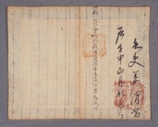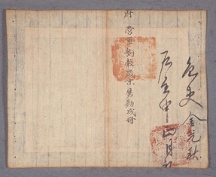 統使〔押〕 軍官金〔押〕 通訓大夫玄風兼任行高靈縣監尙州鎭管兵馬節制都尉鄭〔押〕 G002+AKS+KSM-XG.1751.0405-20190131.B042a_000_B00800055-TXT -