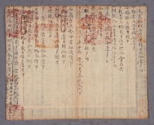 □……□ …□□(辛)耗拾石拾斗柒刀陸合玖夕貳里 …□□(留)庫壹百拾柒石拾參斗肆刀陸合玖里 …□罷鎭曲浦條■■■■■(彌助項移來)〔圖書〕 …□□(正)租壹百陸拾石貳斗壹刀玖合肆夕內 …□百石回 使關泗川都廳出給 …□石回 使關曲浦權管行資下 …□分伍拾石貳斗壹刀玖合肆夕〔圖書〕 …□辛耗 -