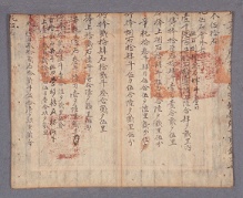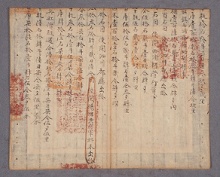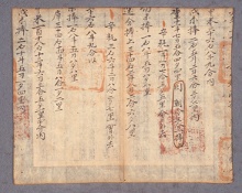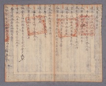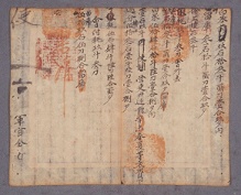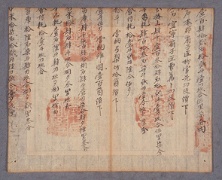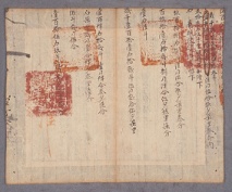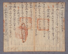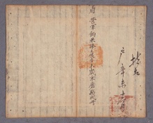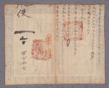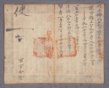 …□合留庫壹百貳拾貳石拾參斗貳刀陸合參夕 …□白米玖拾陸石拾肆斗參刀伍合壹夕■■(還分) 辛耗陸石柒斗伍夕 會付耗壹石肆斗 …□合留庫壹百肆石拾斗參刀伍合陸夕〔圖書〕 …□太貳石柒斗伍刀伍合參夕■■(還分) 辛耗貳斗伍刀貳合玖夕 …□留庫貳石拾斗捌合貳夕 際 案准〔圖書〕 □(統)使〔押〕 -