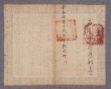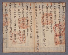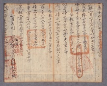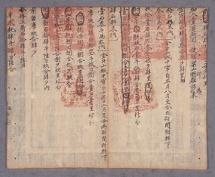□…□(乾隆十六年十二月 日 梁山郡所在□…)〔圖書〕〔圖書〕 …□中米三十六石八斗九合內 …□戌未捧二石五斗二刀六合三夕二里內 …□捧上十一斗七刀五合四夕四里■(因) ■■■■■■■(朝令三分一奉上)〔圖書〕 辛耗一斗一刀七合五夕五里會外去 …□仍未捧一石八斗五刀八夕八里〔圖書〕 …□還 -