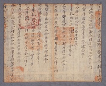 …□壹百肆拾貳石拾貳斗壹刀玖合伍里柒分內〔圖書〕 …□石本郡扇子匠柳官先功役價下 …□石宜寧扇子匠曹萬卜功役價下 …□分捧上肆千壹百參拾肆石拾貳斗壹刀玖合伍里柒分〔圖書〕 …□辛■(未)耗肆百拾參石柒斗貳刀壹合玖夕陸分〔圖書〕 …□會付耗拾壹斗貳刀陸合伍夕 …□拾斗 營納弓槊竹拾箇價下 …□壹 -