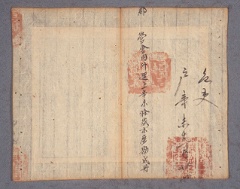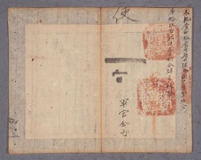 …□〔圖書〕未捧壹石陸斗柒刀玖合肆夕 …□分捧上陸百貳拾壹石拾貳斗伍刀肆合壹夕陸里柒分 辛■(未)耗陸拾貳石貳斗柒刀伍合肆夕貳里 …□捌拾陸石肆斗柒合陸夕伍里柒分內〔圖書〕 未捧壹石陸斗柒刀玖合肆夕〔圖書〕 留庫陸百捌拾肆石拾貳斗貳刀捌合貳夕伍里柒分 案准〔圖書〕 ▣[統]使〔押〕 -