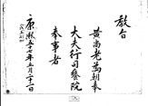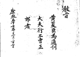 1725년(영조1) 영조가 황하신에게 통훈대부 사헌부집의를 증직하는 문서 교지 통훈대부(通訓大夫) 행 김제군수ㆍ전주진관병마동첨절제사(行金堤郡守ㆍ全州鎭管兵馬同僉節制使) 황하신(黃夏臣)에게 통훈대부(通訓大夫) 사헌부집의(司憲府執義)를 증직함. 옹정(雍正) 3년 4월 1 -