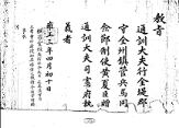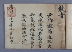 1723년(경종3) 2월 3일에 윤행교(尹行敎)를 이조참의, 지제교로 임명한 4품이상 고신(告身). 교지 윤행교(尹行敎)를 통정대부(通政大夫, 정3품 상) 이조참의(吏曹參議, 정3품) 지제교(知製敎)로 삼아라. 옹정 원년(1723, 경종 3) 2월 3일 ([시명지보 -