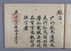 1722년(경종2) 9월 21일에 윤행교(尹行敎)를 홍문관부제학, 지제교로 임명한 4품이상 고신(告身). 교지 윤행교(尹行敎)를 통정대부(通政大夫, 정3품 상) 행(行) 홍문관(弘文館) 부제학(副提學, 정3품) 지제교(知製敎) 겸 (兼) 경연(經筵) 참찬관(參贊官) -