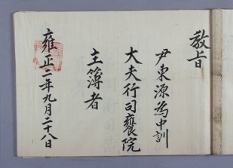 1724년(경종4) 9월 28일에 윤동원(尹東源)을 사옹원 주부(主簿)로 임명한 4품이상 고신(告身). 교지 윤동원(尹東源)을 중훈대부(中訓大夫, 종3품 하) 행(行) 사옹원(司饔院) 주부(主簿, 종6품)로 삼아라. 옹정 2년(1724, 경종 4) 9월 28일 ([ -