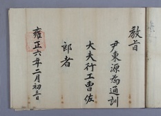 1723년(경종3) 10월에 윤동원(尹東源)을 세제익위사 세마(洗馬)로 임명한 4품이상 고신(告身). 교지 윤동원(尹東源)을 선략장군(宣略將軍, 종4품 하) 행(行) 세제익위사(世弟翊衛司) 세마(洗馬, 정9품)로 삼아라. 옹정 원년(1723, 경종 3) 10월 일 -