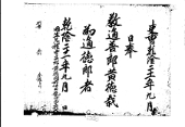 1774년(영조50) 김우하를 가선대부 동지중추부사로 임명하는 교지 교지 김우하(金禹河)를 가선대부(嘉善大夫) 동지중추부사(同知中樞府事)로 삼음. 건륭 39년 월 일 [시명지보] G002+AKS+KSM-XA.1774.1111-20101008.B005m_005_000 -