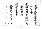 1850년(철종 1) 12월에 이조가 가감역(假監役) 황선(黃銑)을 다음 해 1월 2일에 거행하는 영녕전 춘향대제(永寧殿春享大祭)의 봉조관(捧俎官)에 차정하는 차첩(差帖) 이조 가감역(假監役) 황선(黃銑)을 이달 12월 25일 3경(更) 4점(點) 자시(子時) 정각 -