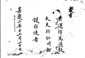 1773년(영조49) 김우하를 절충장군 행용양위부호군로 임명하는 교지 교지 김우하(金禹河)를 절충장군(折衝將軍) 행(行) 용양위부호군(龍驤衛副護軍)으로 삼음. 건륭 38년 월 일 [시명지보] G002+AKS+KSM-XA.1773.1111-20101008.B005m_ -