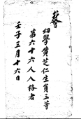 1852년(철종 3) 황지인이 생원시에 입격하였음을 증명하는 문서 교지 유학(幼學) 황지인(黃芝仁)는 생원(生員) 3등 66위로 입격(入格)하였음. 임자년(1852) 3월 16일 G002+AKS+KSM-XA.1852.1111-20101008.B008a_009_001 -