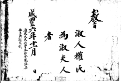 1856년(철종7) 철종이 권씨를 숙부인에 임명하는 고신 교지 숙인(淑人) 권씨(權氏)를 숙부인(淑夫人)으로 삼아라. 함풍 6년 11월 일 통정대부(通政大夫) 병조 참지(兵曹參知) 김용락(金龍洛)의 처를 법전(法典)따라 남편의 직(職)에 따름. [시명지보(施命之寶) -
