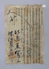 을묘년 도연서당 고지기가 도연서당에서 권순기(權舜紀)로부터 산 땅에 대한 환퇴를 요청하는 내용으로 상소를 하고 그 결과인 환퇴를 집행하던 중에 향청(鄕廳)이 집행을 미루자 다시 한번 안동부 겸관(兼官)에게 청원하는 소지 도연서당(陶淵書堂) 고지기(庫直)…(원문 결락 -