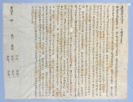 〈1〉 완문(完文) 이 문서는 완정(完定)하는 일입니다. 죄족말(罪族末)은 부친상을 당하여 신계(新溪) 뒤편 동쪽 기슭의 간좌(艮坐) 언덕에 …(묏자리를 정했습니다.)…〉 그런데 수백 년이 흘러 (매장이) 금지된 땅에 하루아침에 매장을 허용하였습니다. 아무리 일족을 -