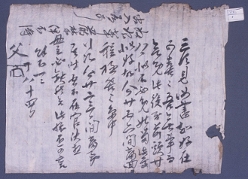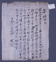 연도미상 안서우(安瑞羽)가 아들 안극(安極)에게 보낸 간찰 극아(極兒)에게 보냄. 내가 나갈 수 없어 내일 아침밥을 먹고 일찍 보낼 것이다. 금석(金石)에게 시켜 데리고 오게 하고, 말은 그가 다시 알리는 것을 기다려서 보내겠다. 베[布] 한 필, 생마(生麻), 짚 -