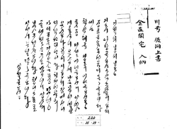 1906년 조문으로 보낸 간찰 뜻하지 않은 변고를 당하셔 시아버님 대감의 상사에 무슨 말씀을 드리겠습니까? 효심이 지극하시니 애통함이 오죽하시겠습니까? 자잘한 몇 글자로 이루 다 형용할 수 없습니다. 그리고 기력은 어떠하시며, 손녀사위가 졸지에 어려운 일을 당하였으 -