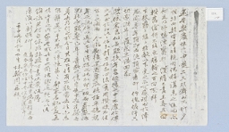 낙성(洛城)을 향하여 바삐 내려오게 되어 뵙지 못함을 애석해하며 상대방의 안부를 묻고, 성이 다른 송림거사(松林居士) 이종운(李鍾韵)을 불러 보아 달라는 일과 위전(位田)의 일은 관에 올려 허제(許題) 받았다는 내용으로 세생(世生) 강의(姜懿)가 보낸 서찰이다. 얼 -
