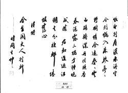 성명 미상이 상대방의 부탁으로 강촌으로 돌아와 사는 자신의 삶의 모습을 담아 급히 적은 7언시와 필획이 엉성한 채로 보낸다며 자신의 시고에 대해 겸사를 적은 내용의 간찰이다. 강가 너머 근옹(槿翁)을 그리워하는데 초천(楚天)에서 헤어질 적에 늦어버린 나를 걱정했네 -