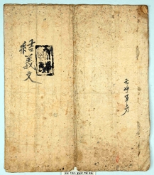 〈1〉 본주군방(本州軍房) 결의문(結義文)[인] 〈2〉 기미년 5월 일 본주군방(本州軍房) 수계문(修稧文) “군방(軍房)과 저희 절은 예전 서로 도와주는 도리에 비추어보면 결코 예사롭지 않습니다. 그러나 한번 읍역(邑役)이 영원히 면제된 뒤로 공사(公私)와 무관하게 -
