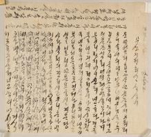 답상장. 근봉. 아랫집에서 어제 나왔으나 편지 못 한다 합니다. 명록이가 온 후 회편이 없으니 여기의 기별도 전할 수 없고 오래 기별을 모르니 답답할 차에 하인이 오며 수찰 (받아 보고) 탐탁하고 신기하며 반가워 자세히 보니, 요사이는 갖가지 위증(痿症)은 그만하시 -