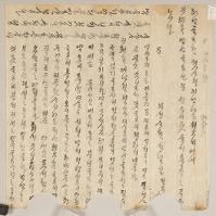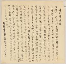 문안 아뢰옵고 인편이 있은 후 한 달이 넘으니 답답하며 깊은 그리움 일시도 부리지 못할 차에 하인이 오며 하서 받자와 황공해하며 뵈오니, 기체후 갖가지 더치신 증세로 인하여 근력 범절이 쇠약해지셔서 여지없으신 문안 듣고 애가 타고 두려운 놀라움과 염려 측량하지 못하 -