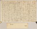 [접봉] 능주 대아 입납 임각 자식 사룀. [자봉] 아버님 전 상사리. 문안 아뢰옵고 그 병환중에 떠나신 후 다시 기별을 모르니 다시 어떠하신지 멀리 떨어져 우러러 답답하고 그리운 저의 마음 부리지 못할 차, 검제로 듣자오니 떠나신 후 도중에서 병환을 더쳐 아주 대 -