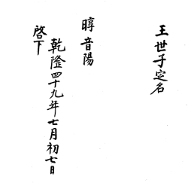 諱․字望 9 1784年(正祖 8) 王世子定名 㬀 音陽 乾隆四十九年七月初七日 啓下 G002+AKS+KSM-XB.1784.1111-20101008.B009a_010_00353_XXX-TXT -
