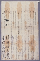 所志 33 1801(純祖1) 69×36 道內化民辛行默辛載壽辛希默辛之默辛誼默等 右謹言冤痛情由段大凡名之以山直者欲使禁護而然耶抑亦使偸葬而然耶世或有偸葬之習而未聞以山直犯於山主者也民等七代祖參議公」 六代祖參奉公墓所在於郡北九水面隱仙洞而各家私山葬於餘麓至于今二百餘年之間一無他人之塚矣不意 -