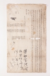 所志 76 1842(憲宗8) 66×32 道內化民辛恒𢢜 右謹言情由事今月初八日良中東部面任以該面瓦灘津船改造之意奉 官傳令來到于民之曾祖母墓龍」 尾上伐松是乎所民官令之下不敢違越問其船材所用幾株則渠之言內棺材木四株則可用云云故依其言」 四株松決價十五兩斫去之意相約而民則以妻病時在待變中故更 -