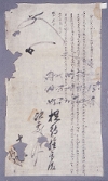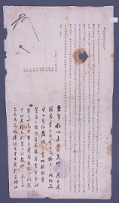 [所志] 利川居朴參[判]宅奴春大 [左寸] 右謹陳情由段, 矣宅先山, 在於__治下北面九老里, 而守護禁養, 于今百餘年矣. 不意洞居洪奇 特、白判允爲名漢, 符同墓直, 乘夜偸斫邱木者, 多至數十餘株, 宰相山所, 與他自別, 則洞民之 肆然亂斫, 其在__法典, 罪不容貸是遣, 置而不治 -