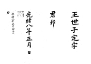 諱․字望 16 1882年(高宗 19) 王世子定字 君邦 光緖八年正月日 ▣(啓) 光緖八年正月初三日 啓 G002+AKS+KSM-XB.1882.1111-20101008.B009a_010_00360_XXX-TXT -