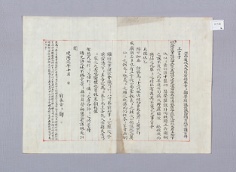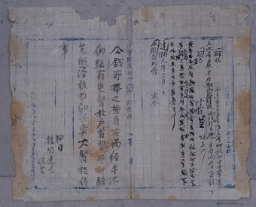 訴狀 上北瑟峙. 閑良 金汝聲, 年四十二.[着名]. 鄭魯孝等呈, 年六十五. 題下該所, 癸巳年大同錢二十五兩三戔一立, 無至再徵向事. 建陽元年二月__日. 本郡裁判所 處分. [題辭] 旣有捧標, 又何出錄, 卽速歸 正, 無至更煩向事. 四日. 收刷色. 實色. G002+AKS+KS -