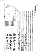 等狀 1 1909年(隆熙 3) 平南江西郡從二品前郡守金元堯等謹齋沐再拜上書于」 大斯文掌禮院卿閣下伏以褒忠崇功 朝家之令典爲人揚美士林之義務粵在萬曆癸巳」 宣廟中興之際 大駕西幸自龍灣 駐蹕本郡時州縣蕩殘亦値六七月潦霖新穀未登供億無以繼之本郡人金厚孫竭忠」 罄貲自六月初十日至八月初十日六旬 -